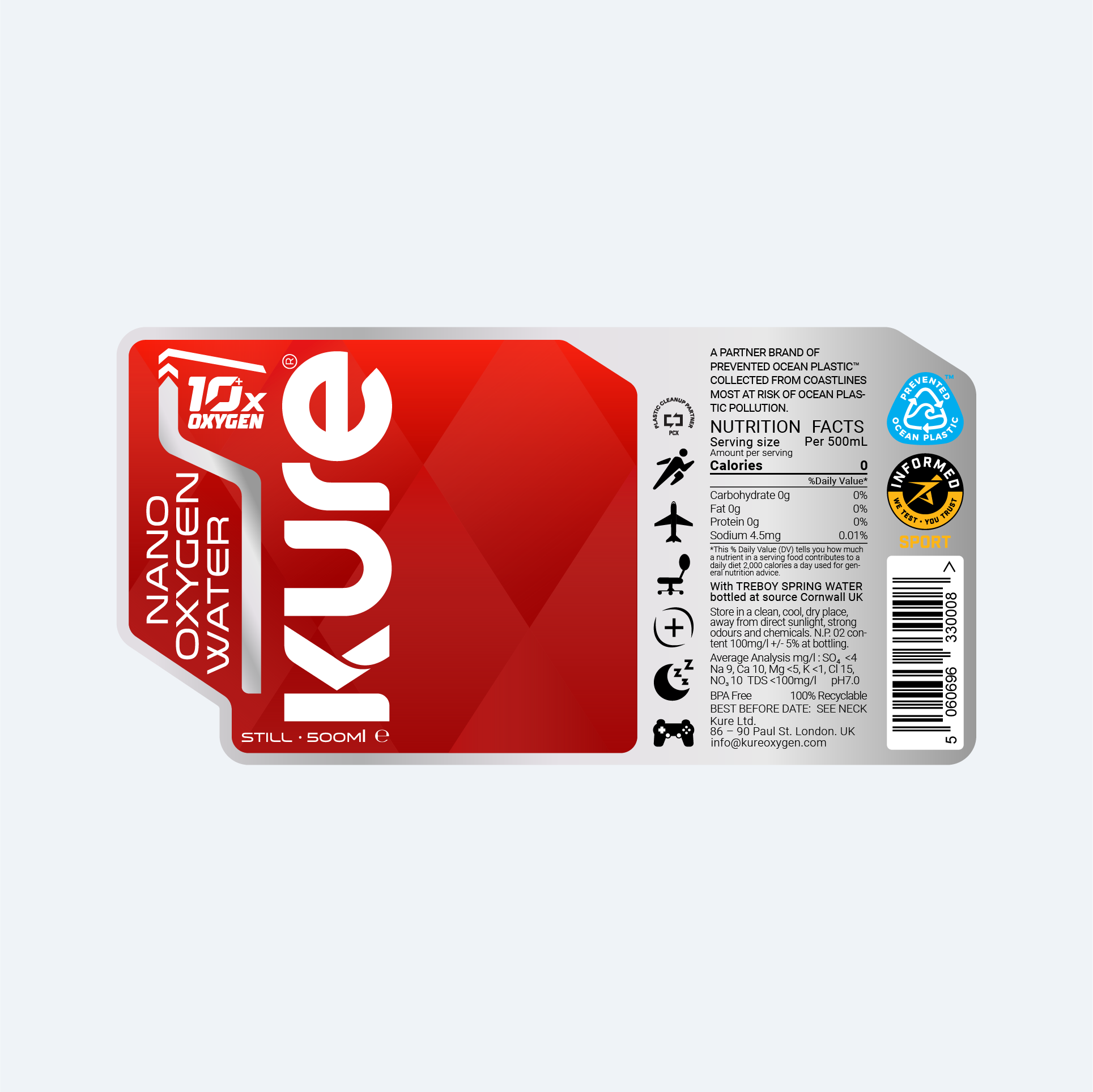 Cornish spring water, enhanced with up to 10x more oxygen than standard bottled water, for hydration that goes further.*